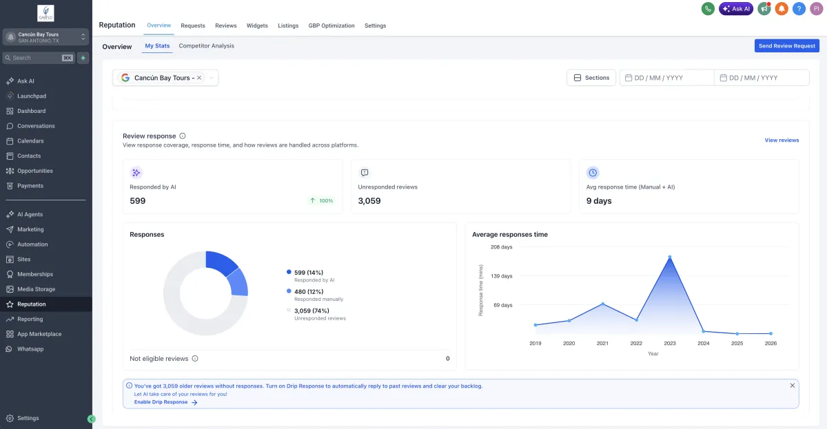 | Gestión de reputación | Birdeye / Podium | $159/mes | ✓ |